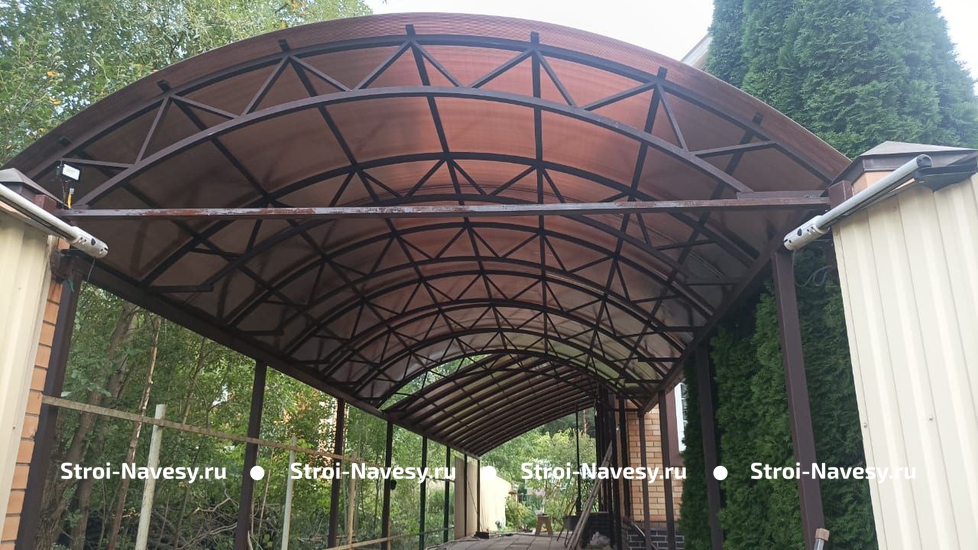Арочный навес с коричневым поликарбонатом