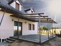Односкатный навес пристрой над крыльцом с кровлей из поликарбоната